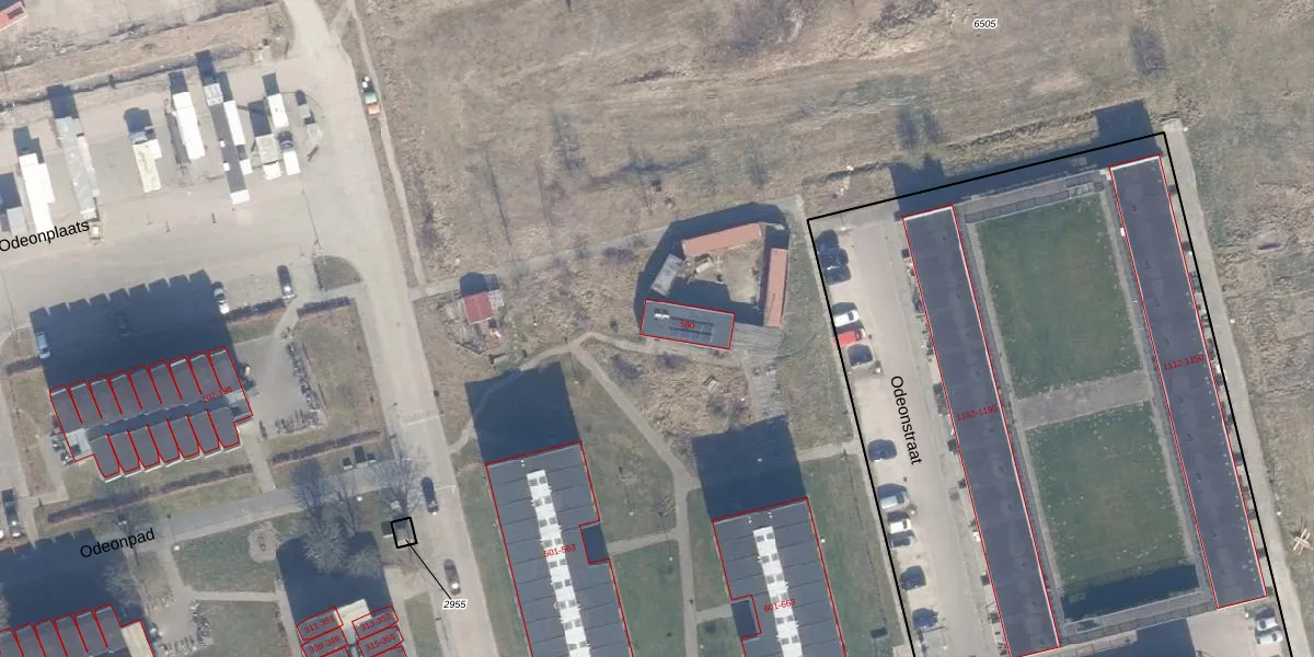Het perceel waarop Odeonstraat 580 staat heeft een oppervlakte van 12,7 ha. Dit is een zeer groot perceel. De perceeloppervlakte wordt geregistreerd door het Kadaster. Gedetailleerde informatie over de maten van dit perceel kunt u vinden in het rapport Kadastrale kaart met maatvoering van Odeonstraat 580.