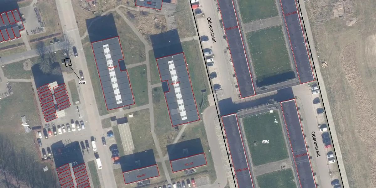 Het perceel waarop Odeonstraat 609 staat heeft een oppervlakte van 12,7 ha. Dit is een zeer groot perceel. De perceeloppervlakte wordt geregistreerd door het Kadaster. Gedetailleerde informatie over de maten van dit perceel kunt u vinden in het rapport Kadastrale kaart met maatvoering van Odeonstraat 609.