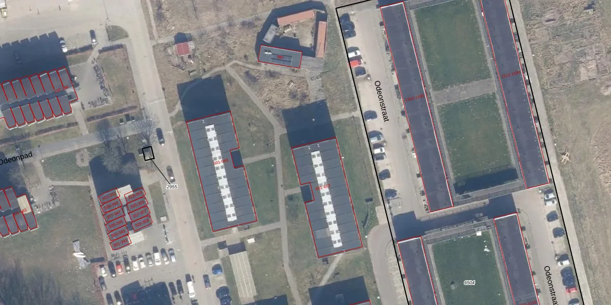 Het perceel waarop Odeonstraat 623 staat heeft een oppervlakte van 12,7 ha. Dit is een zeer groot perceel. De perceeloppervlakte wordt geregistreerd door het Kadaster. Gedetailleerde informatie over de maten van dit perceel kunt u vinden in het rapport Kadastrale kaart met maatvoering van Odeonstraat 623.