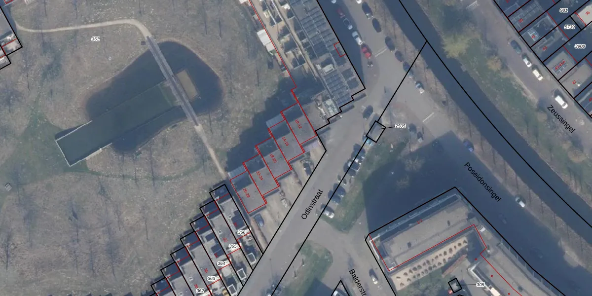 Het perceel waarop Odinstraat 14 staat heeft een oppervlakte van 1,5 ha. Dit is een zeer groot perceel. De perceeloppervlakte wordt geregistreerd door het Kadaster. Gedetailleerde informatie over de maten van dit perceel kunt u vinden in het rapport Kadastrale kaart met maatvoering van Odinstraat 14.