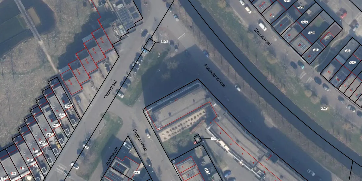 Het perceel waarop Odinstraat 3 staat heeft een oppervlakte van 4264 m². Dit is een zeer groot perceel. De perceeloppervlakte wordt geregistreerd door het Kadaster. Gedetailleerde informatie over de maten van dit perceel kunt u vinden in het rapport Kadastrale kaart met maatvoering van Odinstraat 3.