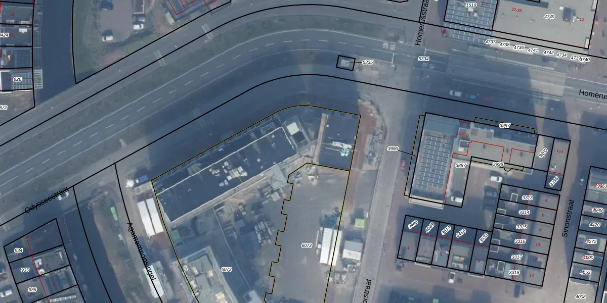 Het perceel waarop Odysseestraat 1-C staat heeft een oppervlakte van 3255 m². Dit is een zeer groot perceel. De perceeloppervlakte wordt geregistreerd door het Kadaster. Gedetailleerde informatie over de maten van dit perceel kunt u vinden in het rapport Kadastrale kaart met maatvoering van Odysseestraat 1-C.
