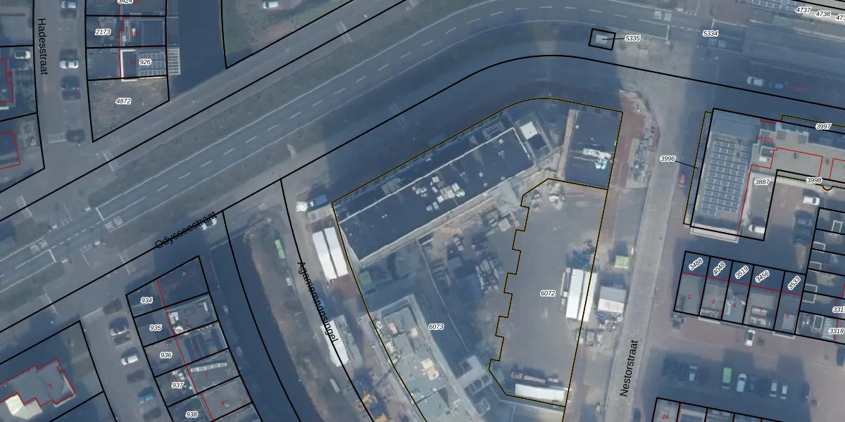 Het perceel waarop Odysseestraat 2-K staat heeft een oppervlakte van 3255 m². Dit is een zeer groot perceel. De perceeloppervlakte wordt geregistreerd door het Kadaster. Gedetailleerde informatie over de maten van dit perceel kunt u vinden in het rapport Kadastrale kaart met maatvoering van Odysseestraat 2-K.