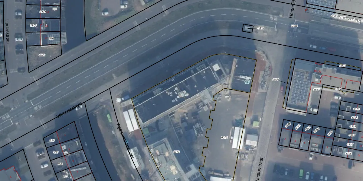 Het perceel waarop Odysseestraat 3-H staat heeft een oppervlakte van 3255 m². Dit is een zeer groot perceel. De perceeloppervlakte wordt geregistreerd door het Kadaster. Gedetailleerde informatie over de maten van dit perceel kunt u vinden in het rapport Kadastrale kaart met maatvoering van Odysseestraat 3-H.