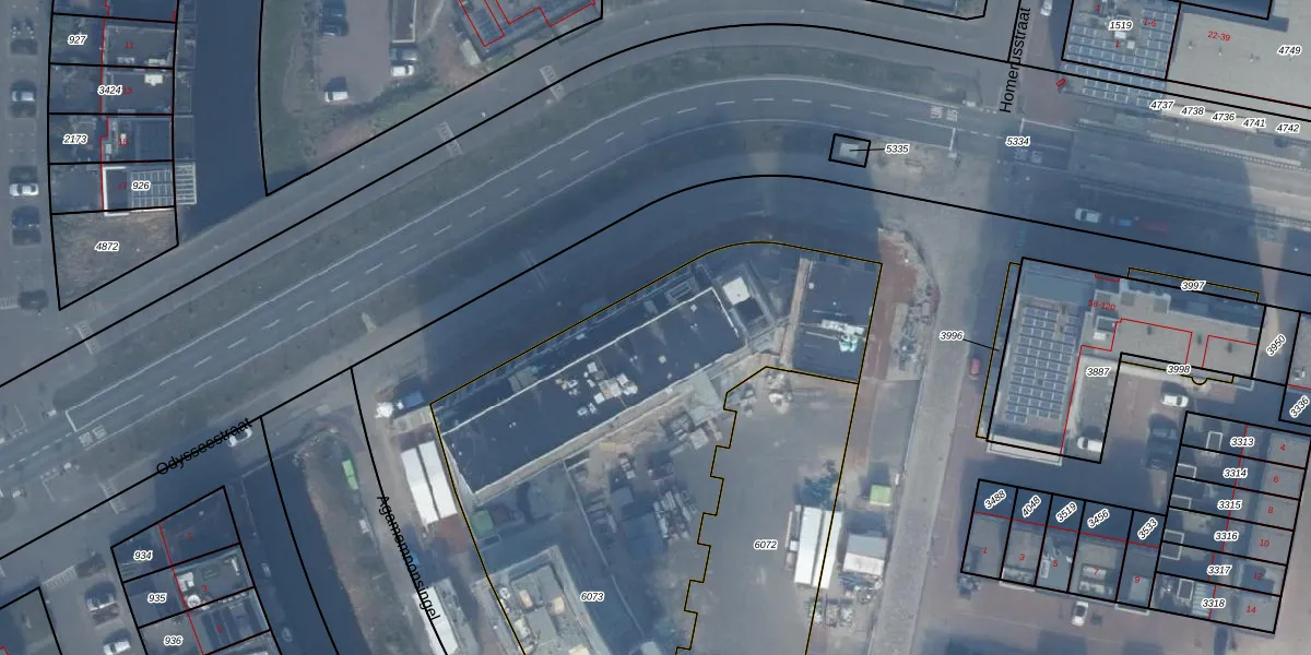 Het perceel waarop Odysseestraat 4-F staat heeft een oppervlakte van 3255 m². Dit is een zeer groot perceel. De perceeloppervlakte wordt geregistreerd door het Kadaster. Gedetailleerde informatie over de maten van dit perceel kunt u vinden in het rapport Kadastrale kaart met maatvoering van Odysseestraat 4-F.