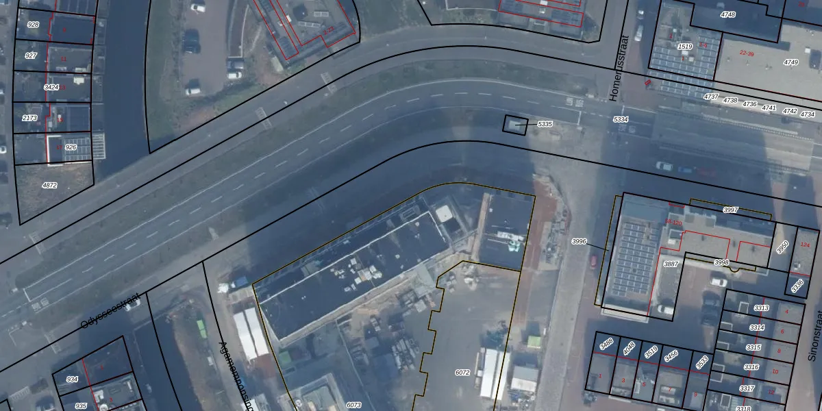 Het perceel waarop Odysseestraat 5-B staat heeft een oppervlakte van 3255 m². Dit is een zeer groot perceel. De perceeloppervlakte wordt geregistreerd door het Kadaster. Gedetailleerde informatie over de maten van dit perceel kunt u vinden in het rapport Kadastrale kaart met maatvoering van Odysseestraat 5-B.