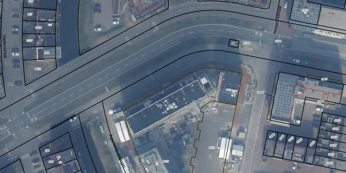 Het perceel waarop Odysseestraat 5-D staat heeft een oppervlakte van 3255 m². Dit is een zeer groot perceel. De perceeloppervlakte wordt geregistreerd door het Kadaster. Gedetailleerde informatie over de maten van dit perceel kunt u vinden in het rapport Kadastrale kaart met maatvoering van Odysseestraat 5-D.