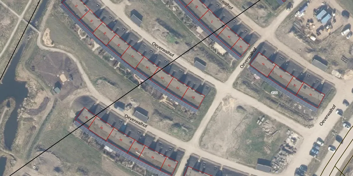 Het perceel waarop Oeverwalhof 54 staat heeft een oppervlakte van 3,3 ha. Dit is een zeer groot perceel. De perceeloppervlakte wordt geregistreerd door het Kadaster. Gedetailleerde informatie over de maten van dit perceel kunt u vinden in het rapport Kadastrale kaart met maatvoering van Oeverwalhof 54.