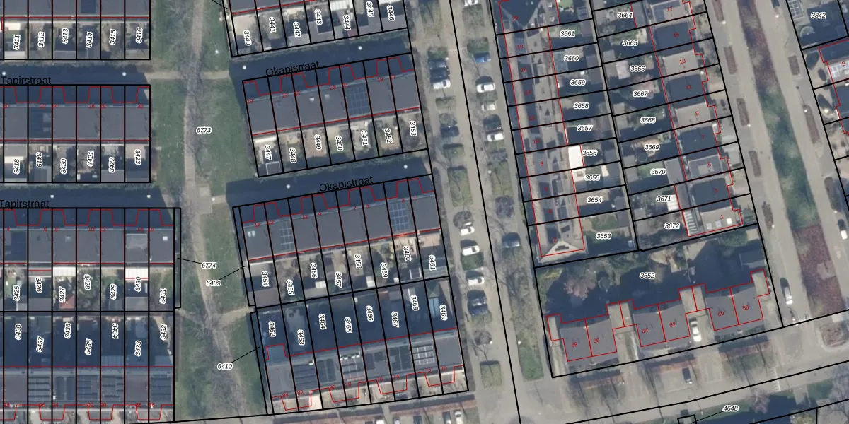 Het perceel waarop Okapistraat 1 staat heeft een oppervlakte van 146 m². Dit is een middelgroot perceel. De perceeloppervlakte wordt geregistreerd door het Kadaster. Gedetailleerde informatie over de maten van dit perceel kunt u vinden in het rapport Kadastrale kaart met maatvoering van Okapistraat 1.