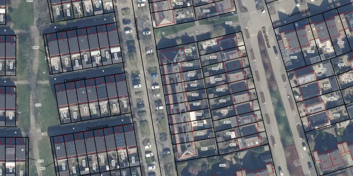 Het perceel waarop Okapistraat 14 staat heeft een oppervlakte van 136 m². Dit is een middelgroot perceel. De perceeloppervlakte wordt geregistreerd door het Kadaster. Gedetailleerde informatie over de maten van dit perceel kunt u vinden in het rapport Kadastrale kaart met maatvoering van Okapistraat 14.