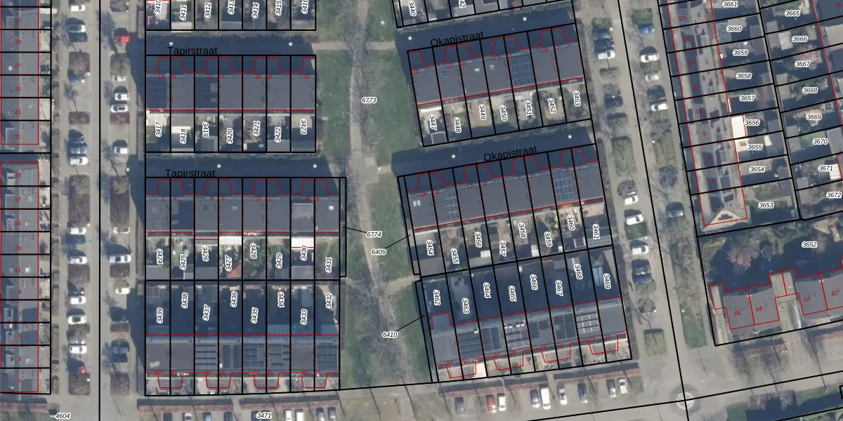 Het perceel waarop Okapistraat 15 staat heeft een oppervlakte van 146 m². Dit is een middelgroot perceel. De perceeloppervlakte wordt geregistreerd door het Kadaster. Gedetailleerde informatie over de maten van dit perceel kunt u vinden in het rapport Kadastrale kaart met maatvoering van Okapistraat 15.