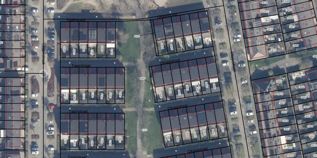 Het perceel waarop Okapistraat 43 staat heeft een oppervlakte van 137 m². Dit is een middelgroot perceel. De perceeloppervlakte wordt geregistreerd door het Kadaster. Gedetailleerde informatie over de maten van dit perceel kunt u vinden in het rapport Kadastrale kaart met maatvoering van Okapistraat 43.