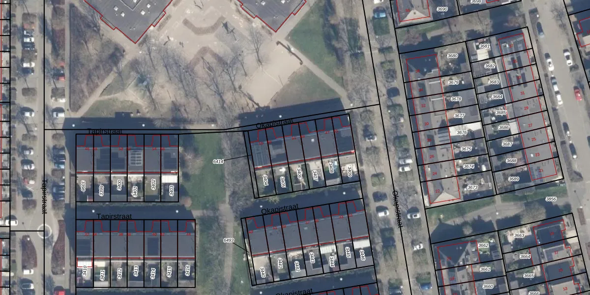 Okapistraat 51 is gelegen op kadastraal perceel AMR04N3406. Deze kadastrale aanduiding is uniek en wordt gebruikt door het Kadaster om eigendomsrechten en andere zakelijke rechten vast te leggen. Het perceel maakt onderdeel uit van de kadastrale gemeente Almere.