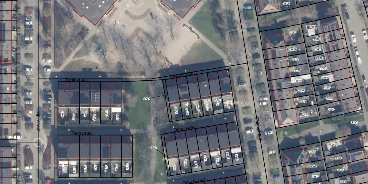 Okapistraat 53 is gelegen op kadastraal perceel AMR04N3405. Deze kadastrale aanduiding is uniek en wordt gebruikt door het Kadaster om eigendomsrechten en andere zakelijke rechten vast te leggen. Het perceel maakt onderdeel uit van de kadastrale gemeente Almere.