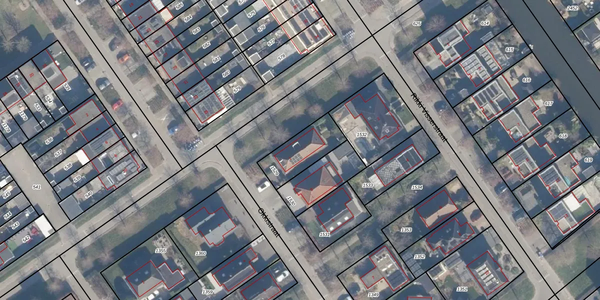 Het perceel waarop Okkistraat 1 staat heeft een oppervlakte van 323 m². Dit is een groot perceel. De perceeloppervlakte wordt geregistreerd door het Kadaster. Gedetailleerde informatie over de maten van dit perceel kunt u vinden in het rapport Kadastrale kaart met maatvoering van Okkistraat 1.