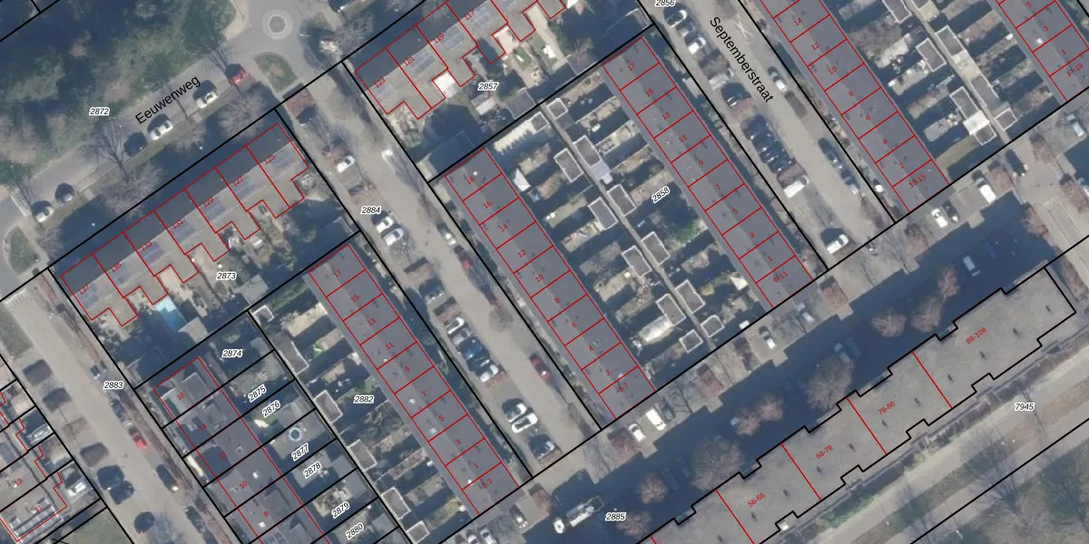 Het perceel waarop Oktoberstraat 10 staat heeft een oppervlakte van 2829 m². Dit is een zeer groot perceel. De perceeloppervlakte wordt geregistreerd door het Kadaster. Gedetailleerde informatie over de maten van dit perceel kunt u vinden in het rapport Kadastrale kaart met maatvoering van Oktoberstraat 10.