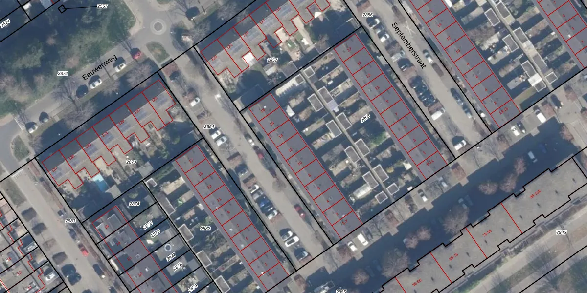 Het perceel waarop Oktoberstraat 12 staat heeft een oppervlakte van 2829 m². Dit is een zeer groot perceel. De perceeloppervlakte wordt geregistreerd door het Kadaster. Gedetailleerde informatie over de maten van dit perceel kunt u vinden in het rapport Kadastrale kaart met maatvoering van Oktoberstraat 12.