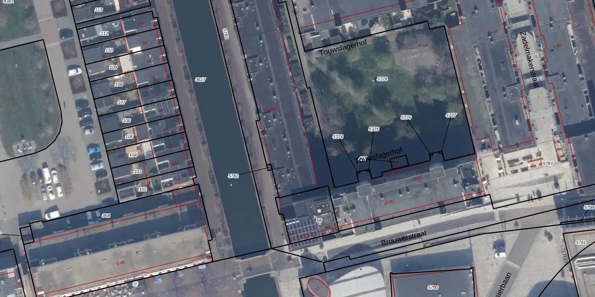 Het adres is gelegen op perceel 5787 in de sectie K en de kadastrale gemeente Almere. De kadastrale aanduiding is aldus AMR04-K-5787. Het perceel is met 1,3 ha relatief groot. Het gemiddelde ligt in de kadastrale gemeente Almere op 3327,75 m². De grootste perceeloppervlakte in de kadastrale gemeente is 32,12 km². De kleinste oppervlakte bedraagt 0 m². Er zijn 317 adressen aanwezig op het perceel. In de Basisregistratie Kadaster (BRK) werden de grenzen van het perceel geregistreerd op 16-04-2003.