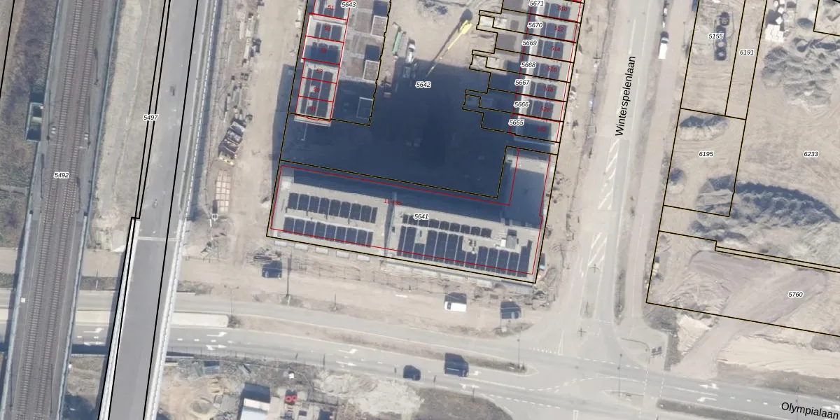 Olympialaan 55 is gelegen op kadastraal perceel AMR04W5641. Deze kadastrale aanduiding is uniek en wordt gebruikt door het Kadaster om eigendomsrechten en andere zakelijke rechten vast te leggen. Het perceel maakt onderdeel uit van de kadastrale gemeente Almere.