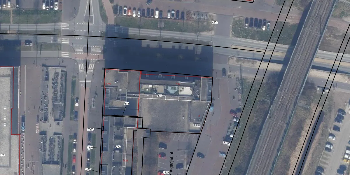 Het adres is gelegen op perceel 172 in de sectie W en de kadastrale gemeente Almere. De kadastrale aanduiding is aldus AMR04-W-172. De gemiddelde perceelgrootte in Almere is 3327,75 m². Dit perceel is kleiner: de perceeloppervlakte bedraagt 1859 m². De grootste perceeloppervlakte in de kadastrale gemeente is 32,12 km². De kleinste oppervlakte bedraagt 0 m². Op het perceel liggen in totaal 24 adressen. In de Basisregistratie Kadaster (BRK) werden de grenzen van het perceel geregistreerd op 06-06-2013.