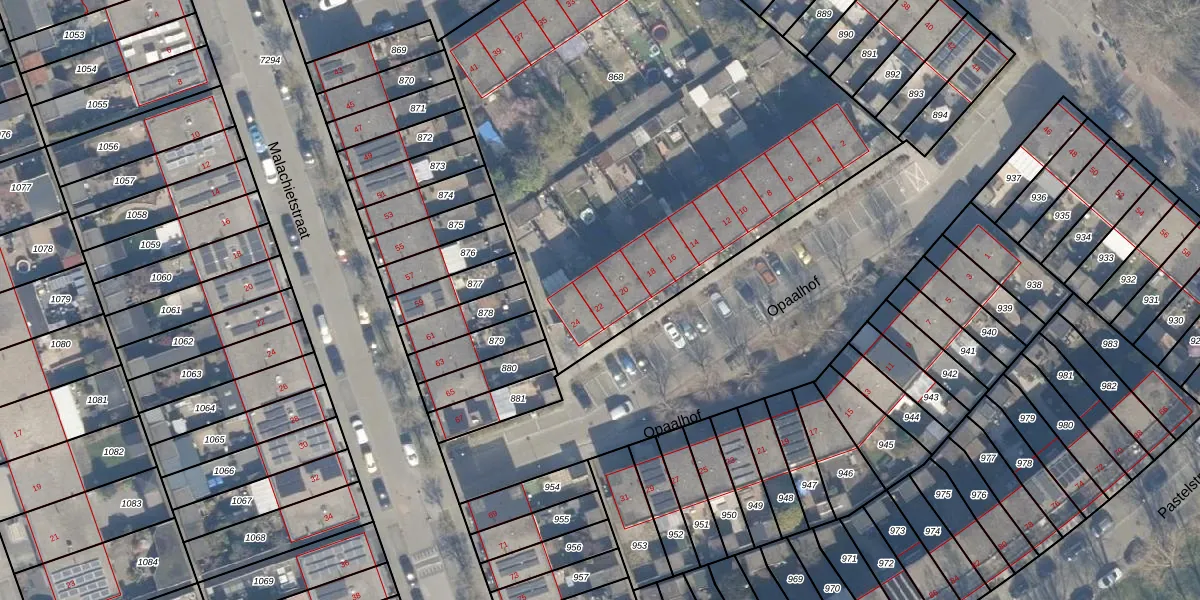 Het perceel waarop Opaalhof 22 staat heeft een oppervlakte van 3110 m². Dit is een zeer groot perceel. De perceeloppervlakte wordt geregistreerd door het Kadaster. Gedetailleerde informatie over de maten van dit perceel kunt u vinden in het rapport Kadastrale kaart met maatvoering van Opaalhof 22.