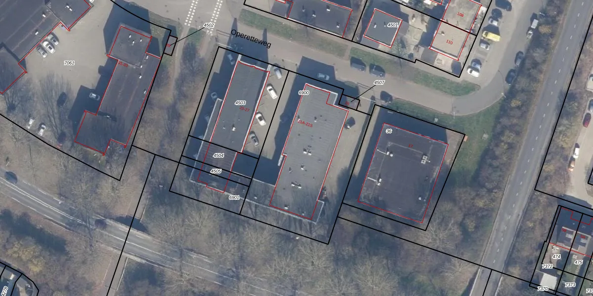 Operetteweg 21-P is gelegen op kadastraal perceel AMR04Q6900. Deze kadastrale aanduiding is uniek en wordt gebruikt door het Kadaster om eigendomsrechten en andere zakelijke rechten vast te leggen. Het perceel maakt onderdeel uit van de kadastrale gemeente Almere.