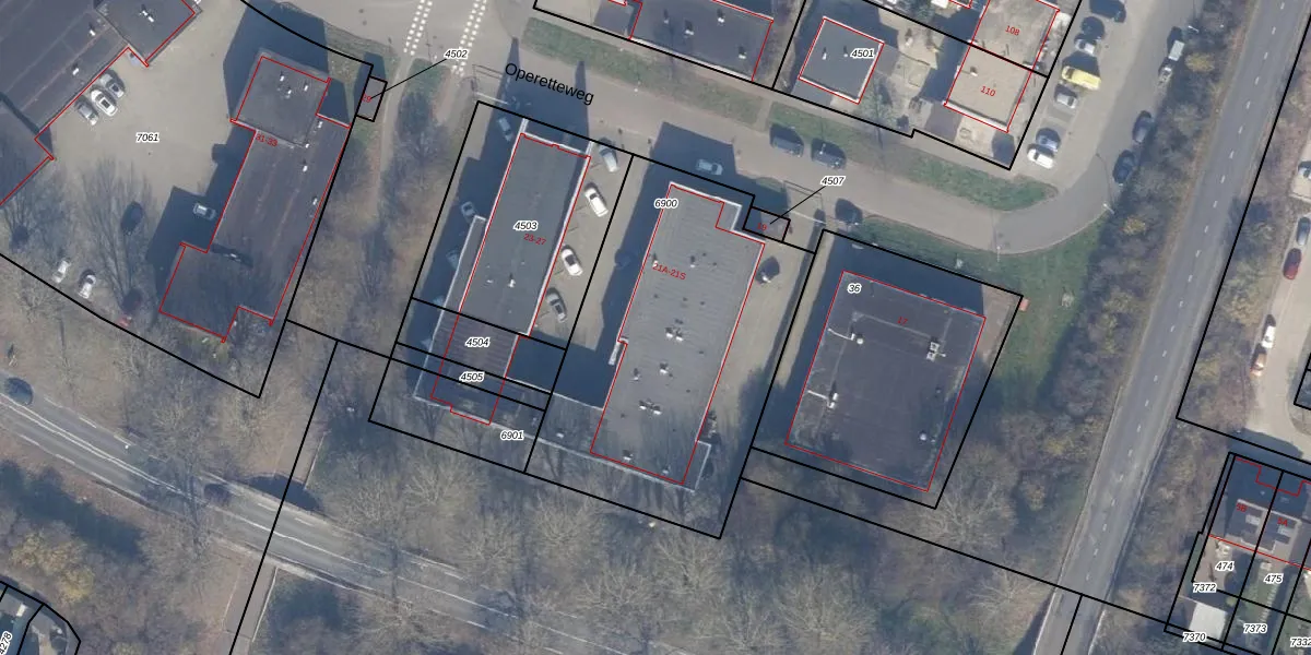 Operetteweg 21-Q is gelegen op kadastraal perceel AMR04Q6900. Deze kadastrale aanduiding is uniek en wordt gebruikt door het Kadaster om eigendomsrechten en andere zakelijke rechten vast te leggen. Het perceel maakt onderdeel uit van de kadastrale gemeente Almere.