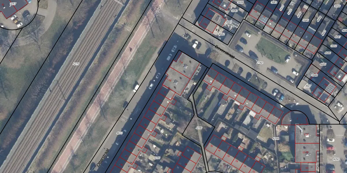 Het perceel waarop Otterstraat 13 staat heeft een oppervlakte van 4230 m². Dit is een zeer groot perceel. De perceeloppervlakte wordt geregistreerd door het Kadaster. Gedetailleerde informatie over de maten van dit perceel kunt u vinden in het rapport Kadastrale kaart met maatvoering van Otterstraat 13.