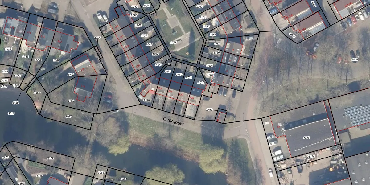 Het perceel waarop Overgouw 125 staat heeft een oppervlakte van 168 m². Dit is een middelgroot perceel. De perceeloppervlakte wordt geregistreerd door het Kadaster. Gedetailleerde informatie over de maten van dit perceel kunt u vinden in het rapport Kadastrale kaart met maatvoering van Overgouw 125.