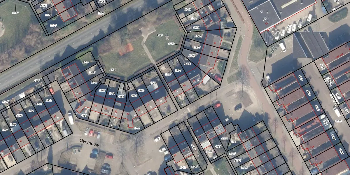 Het perceel waarop Overgouw 20 staat heeft een oppervlakte van 169 m². Dit is een middelgroot perceel. De perceeloppervlakte wordt geregistreerd door het Kadaster. Gedetailleerde informatie over de maten van dit perceel kunt u vinden in het rapport Kadastrale kaart met maatvoering van Overgouw 20.
