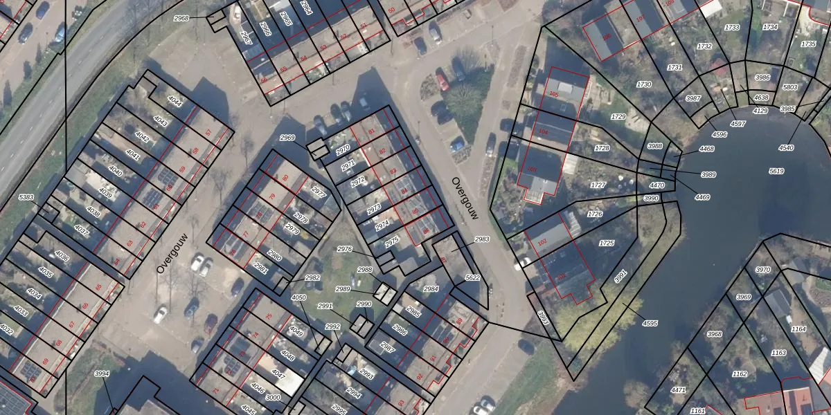 Het perceel waarop Overgouw 85 staat heeft een oppervlakte van 112 m². Dit is een middelgroot perceel. De perceeloppervlakte wordt geregistreerd door het Kadaster. Gedetailleerde informatie over de maten van dit perceel kunt u vinden in het rapport Kadastrale kaart met maatvoering van Overgouw 85.
