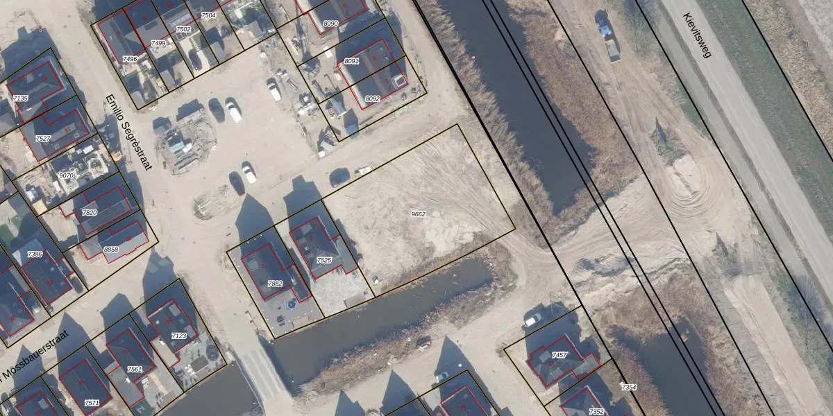 Het adres is gelegen op perceel 9662 in de sectie C en de kadastrale gemeente Almere. De kadastrale aanduiding is aldus AMR04-C-9662. Het perceel is kleiner dan gemiddeld in Almere. Het perceel is 1058 m² groot, terwijl het gemiddelde ligt op 3328,15 m². Het grootste perceel in de kadastrale gemeente is 32,12 km². Het kleinste perceel heeft een oppervlakte van 0 m². Op het perceel zijn 16 adressen aanwezig. De huidige grenzen van het perceel zijn digitaal in de Basisregistratie Kadaster (BRK) geregistreerd op 23-05-2025.