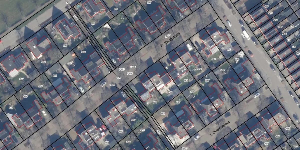 Het perceel waarop P. Ellingstraat 9 staat heeft een oppervlakte van 325 m². Dit is een groot perceel. De perceeloppervlakte wordt geregistreerd door het Kadaster. Gedetailleerde informatie over de maten van dit perceel kunt u vinden in het rapport Kadastrale kaart met maatvoering van P. Ellingstraat 9.
