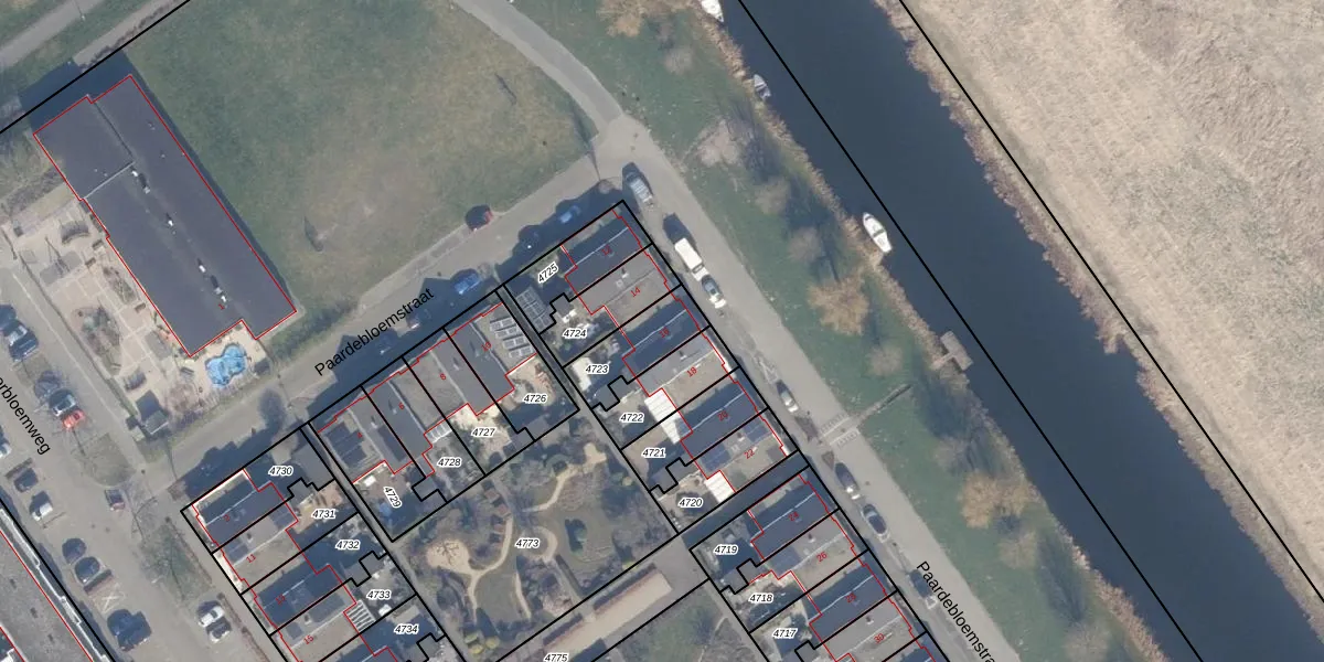 Paardebloemstraat 16 is gelegen op kadastraal perceel AMR04N4723. Deze kadastrale aanduiding is uniek en wordt gebruikt door het Kadaster om eigendomsrechten en andere zakelijke rechten vast te leggen. Het perceel maakt onderdeel uit van de kadastrale gemeente Almere.