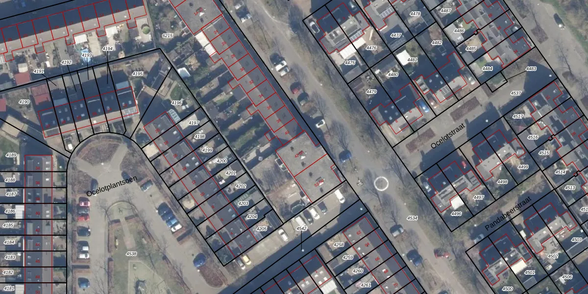 Het perceel waarop Pandabeerstraat 44 staat heeft een oppervlakte van 4589 m². Dit is een zeer groot perceel. De perceeloppervlakte wordt geregistreerd door het Kadaster. Gedetailleerde informatie over de maten van dit perceel kunt u vinden in het rapport Kadastrale kaart met maatvoering van Pandabeerstraat 44.