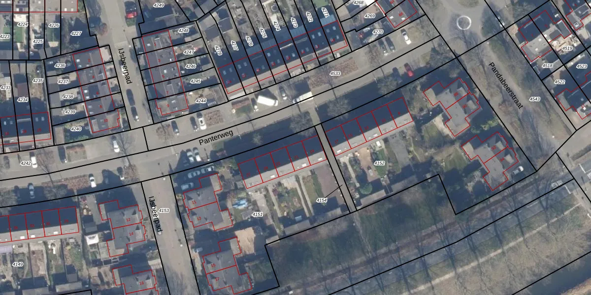 Panterweg 21 is gelegen op kadastraal perceel AMR04N4151. Deze kadastrale aanduiding is uniek en wordt gebruikt door het Kadaster om eigendomsrechten en andere zakelijke rechten vast te leggen. Het perceel maakt onderdeel uit van de kadastrale gemeente Almere.