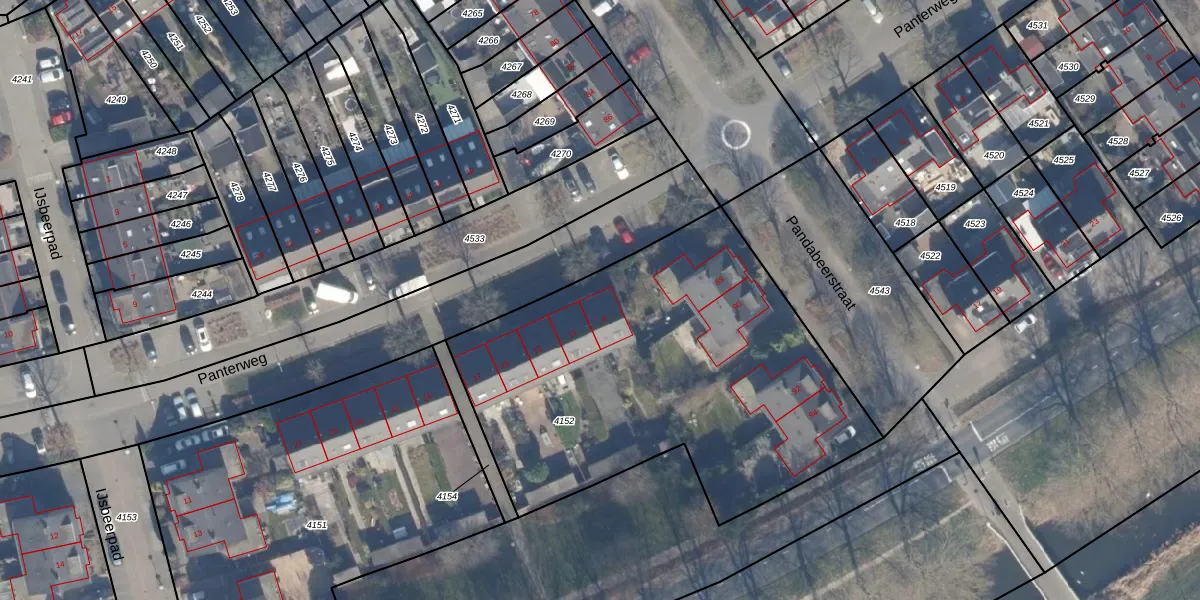 Panterweg 9 is gelegen op kadastraal perceel AMR04N4152. Deze kadastrale aanduiding is uniek en wordt gebruikt door het Kadaster om eigendomsrechten en andere zakelijke rechten vast te leggen. Het perceel maakt onderdeel uit van de kadastrale gemeente Almere.