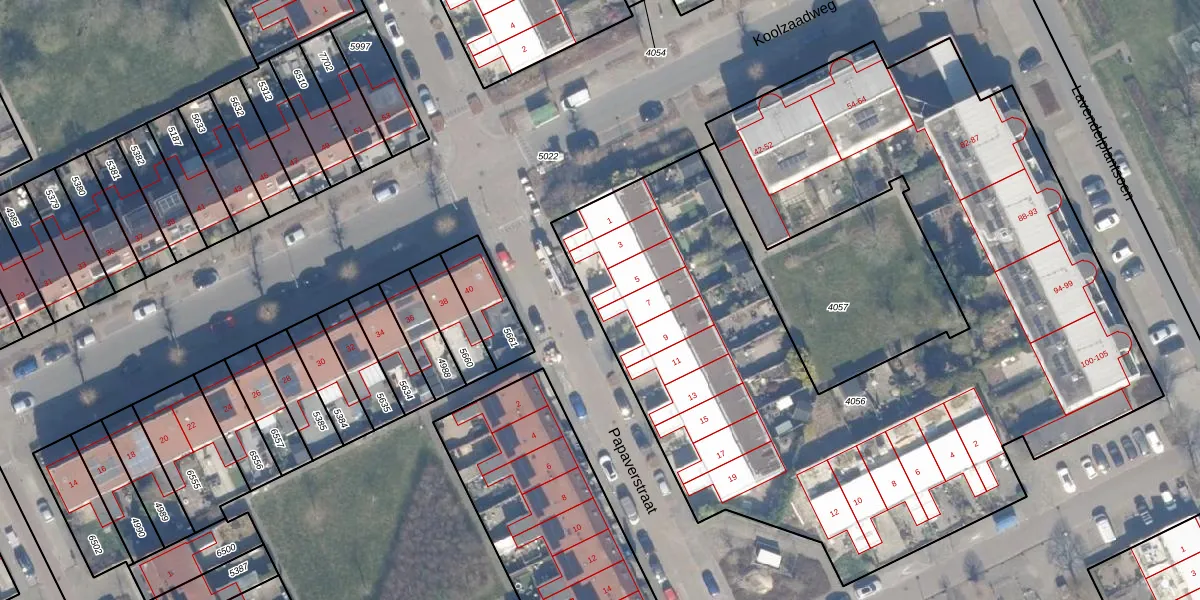 Papaverstraat 5 is gelegen op kadastraal perceel AMR04O4056. Deze kadastrale aanduiding is uniek en wordt gebruikt door het Kadaster om eigendomsrechten en andere zakelijke rechten vast te leggen. Het perceel maakt onderdeel uit van de kadastrale gemeente Almere.