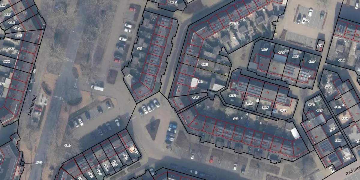 Het perceel waarop Parkwerf 43 staat heeft een oppervlakte van 399 m². Dit is een groot perceel. De perceeloppervlakte wordt geregistreerd door het Kadaster. Gedetailleerde informatie over de maten van dit perceel kunt u vinden in het rapport Kadastrale kaart met maatvoering van Parkwerf 43.