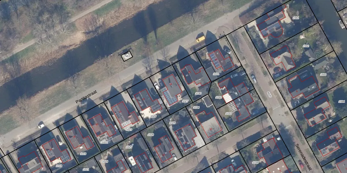 Het perceel waarop Partitastraat 26 staat heeft een oppervlakte van 374 m². Dit is een groot perceel. De perceeloppervlakte wordt geregistreerd door het Kadaster. Gedetailleerde informatie over de maten van dit perceel kunt u vinden in het rapport Kadastrale kaart met maatvoering van Partitastraat 26.