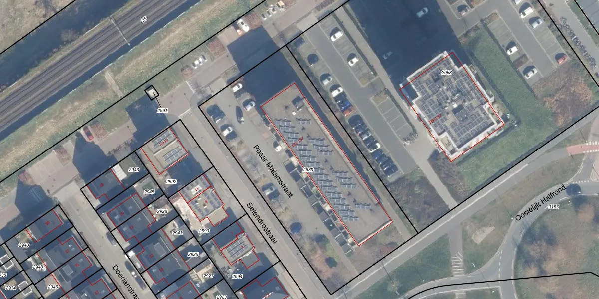 Het perceel waarop Pasar Malamstraat 155 staat heeft een oppervlakte van 2740 m². Dit is een zeer groot perceel. De perceeloppervlakte wordt geregistreerd door het Kadaster. Gedetailleerde informatie over de maten van dit perceel kunt u vinden in het rapport Kadastrale kaart met maatvoering van Pasar Malamstraat 155.