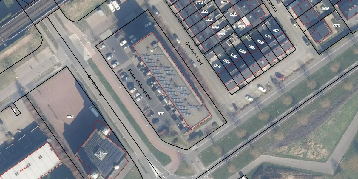 Het perceel waarop Pasar Malamstraat 17 staat heeft een oppervlakte van 2680 m². Dit is een zeer groot perceel. De perceeloppervlakte wordt geregistreerd door het Kadaster. Gedetailleerde informatie over de maten van dit perceel kunt u vinden in het rapport Kadastrale kaart met maatvoering van Pasar Malamstraat 17.