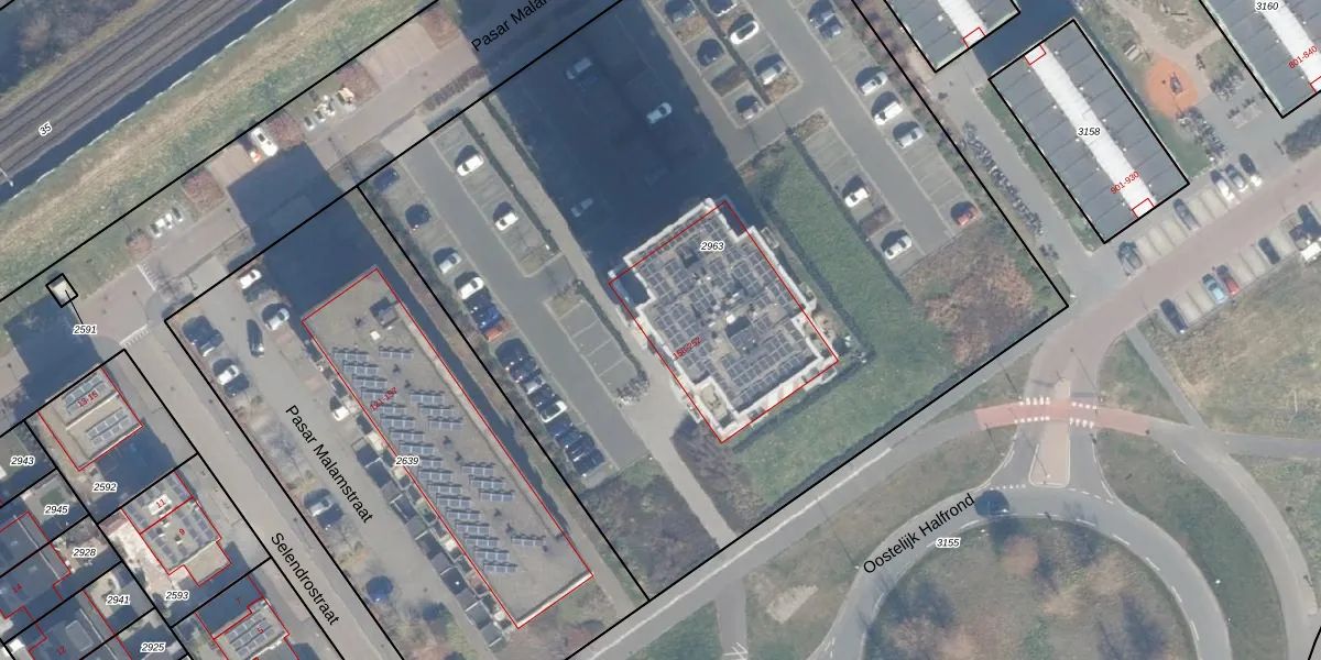 Het perceel waarop Pasar Malamstraat 183 staat heeft een oppervlakte van 5963 m². Dit is een zeer groot perceel. De perceeloppervlakte wordt geregistreerd door het Kadaster. Gedetailleerde informatie over de maten van dit perceel kunt u vinden in het rapport Kadastrale kaart met maatvoering van Pasar Malamstraat 183.
