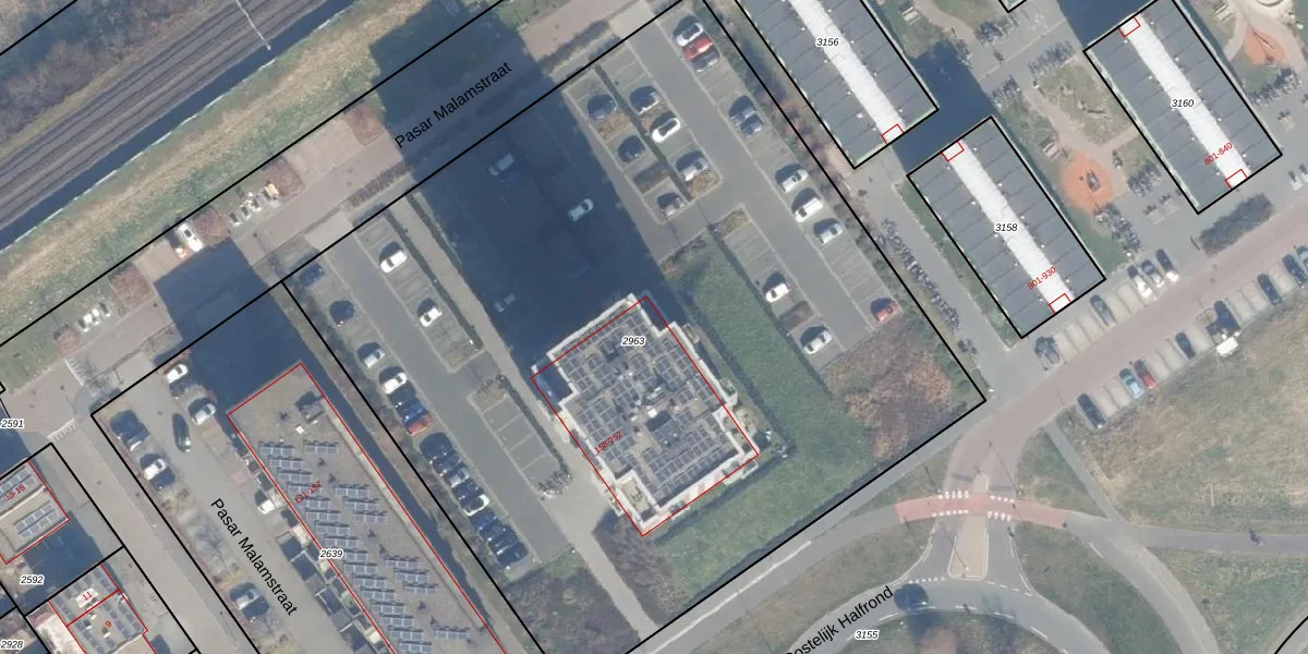 Het perceel waarop Pasar Malamstraat 185 staat heeft een oppervlakte van 5963 m². Dit is een zeer groot perceel. De perceeloppervlakte wordt geregistreerd door het Kadaster. Gedetailleerde informatie over de maten van dit perceel kunt u vinden in het rapport Kadastrale kaart met maatvoering van Pasar Malamstraat 185.