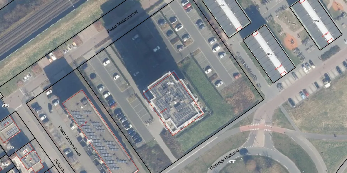 Het perceel waarop Pasar Malamstraat 201 staat heeft een oppervlakte van 5963 m². Dit is een zeer groot perceel. De perceeloppervlakte wordt geregistreerd door het Kadaster. Gedetailleerde informatie over de maten van dit perceel kunt u vinden in het rapport Kadastrale kaart met maatvoering van Pasar Malamstraat 201.
