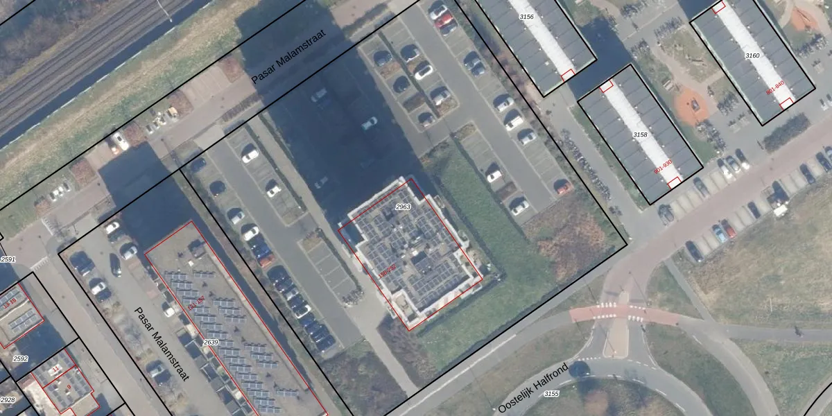 Het perceel waarop Pasar Malamstraat 209 staat heeft een oppervlakte van 5963 m². Dit is een zeer groot perceel. De perceeloppervlakte wordt geregistreerd door het Kadaster. Gedetailleerde informatie over de maten van dit perceel kunt u vinden in het rapport Kadastrale kaart met maatvoering van Pasar Malamstraat 209.