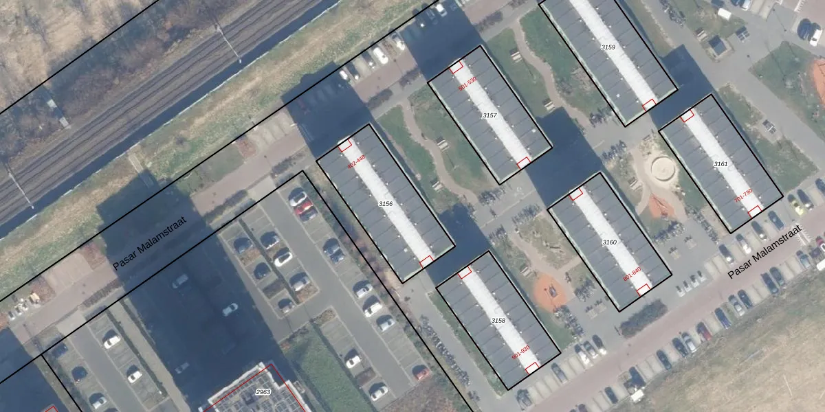 Het perceel waarop Pasar Malamstraat 446 staat heeft een oppervlakte van 569 m². Dit is een groot perceel. De perceeloppervlakte wordt geregistreerd door het Kadaster. Gedetailleerde informatie over de maten van dit perceel kunt u vinden in het rapport Kadastrale kaart met maatvoering van Pasar Malamstraat 446.