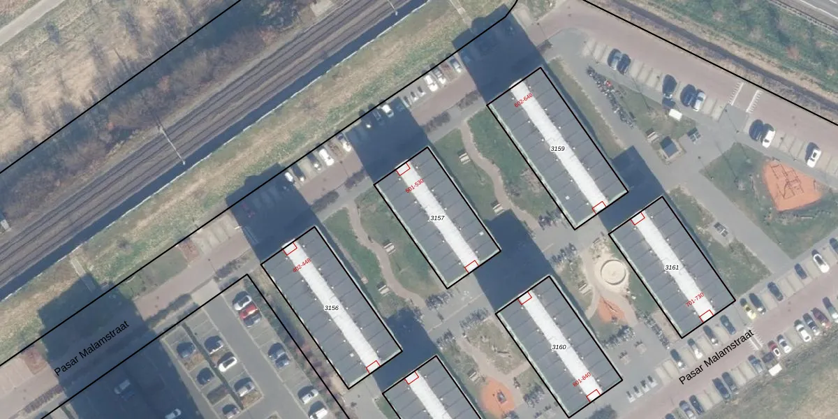 Het perceel waarop Pasar Malamstraat 504 staat heeft een oppervlakte van 475 m². Dit is een groot perceel. De perceeloppervlakte wordt geregistreerd door het Kadaster. Gedetailleerde informatie over de maten van dit perceel kunt u vinden in het rapport Kadastrale kaart met maatvoering van Pasar Malamstraat 504.