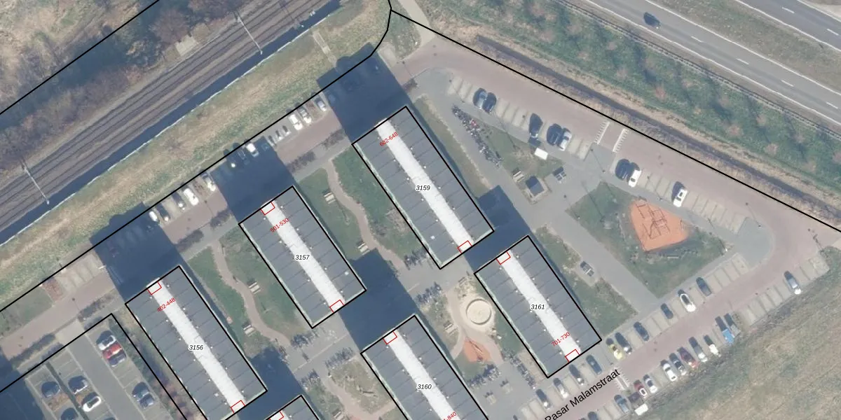 Pasar Malamstraat 615 is gelegen op kadastraal perceel AMR04R3159. Deze kadastrale aanduiding is uniek en wordt gebruikt door het Kadaster om eigendomsrechten en andere zakelijke rechten vast te leggen. Het perceel maakt onderdeel uit van de kadastrale gemeente Almere.