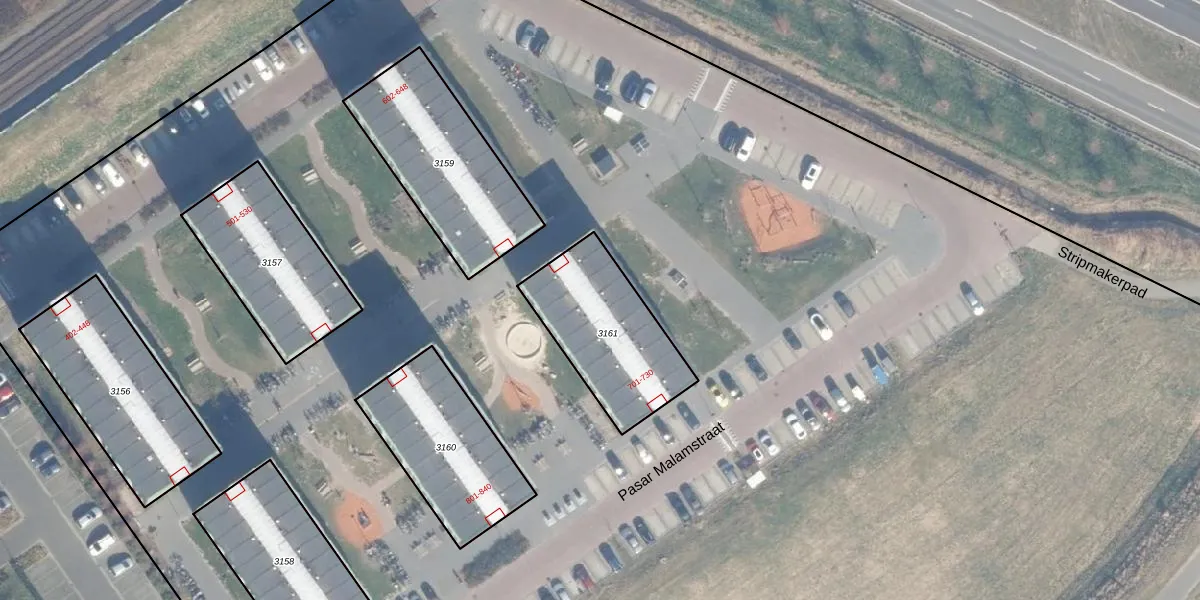 Het perceel waarop Pasar Malamstraat 702 staat heeft een oppervlakte van 475 m². Dit is een groot perceel. De perceeloppervlakte wordt geregistreerd door het Kadaster. Gedetailleerde informatie over de maten van dit perceel kunt u vinden in het rapport Kadastrale kaart met maatvoering van Pasar Malamstraat 702.
